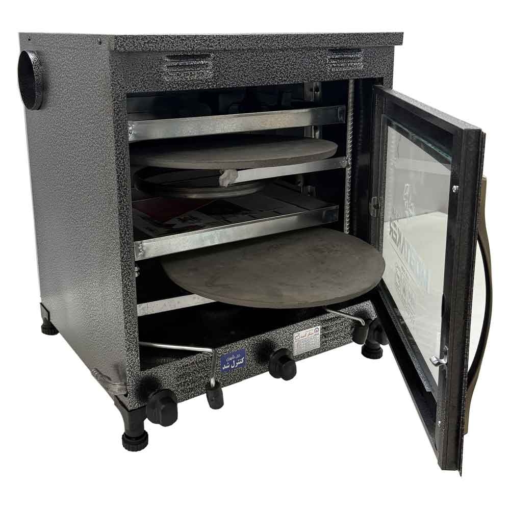 *دارای ۳ شعله در بالا، وسط و دیگری در پایین تنور و دارای ۳ ولوم جداگانه جهت تنظیم دمای محیط فر گازی